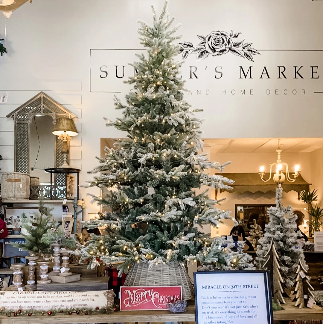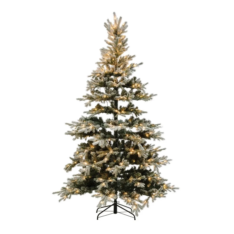 5′ Round x 8’H Pre-Lit Flocked Faux Pine Tree
