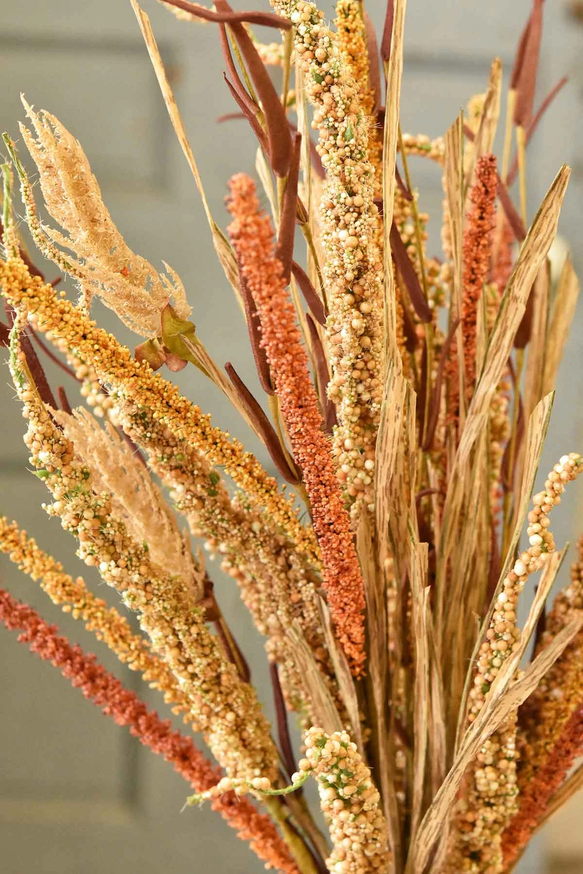 A collection that abounds in texture! Millet like spires with two sizes of bubble berries, grassy sprays, and foxtail elements for extra interest.