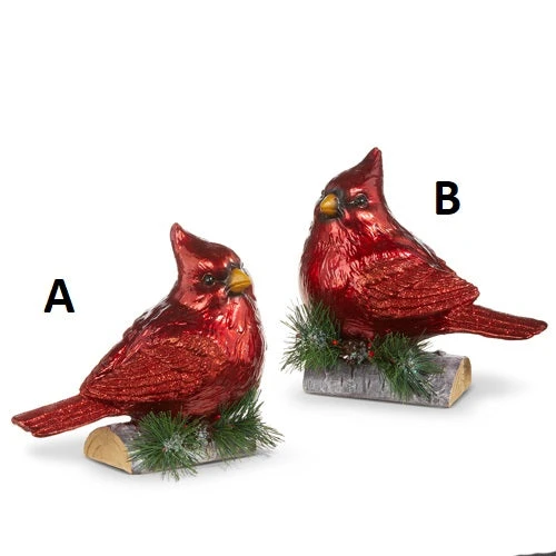 Cardinal Figurine Sitting On Birch Branch, 2 Style Options