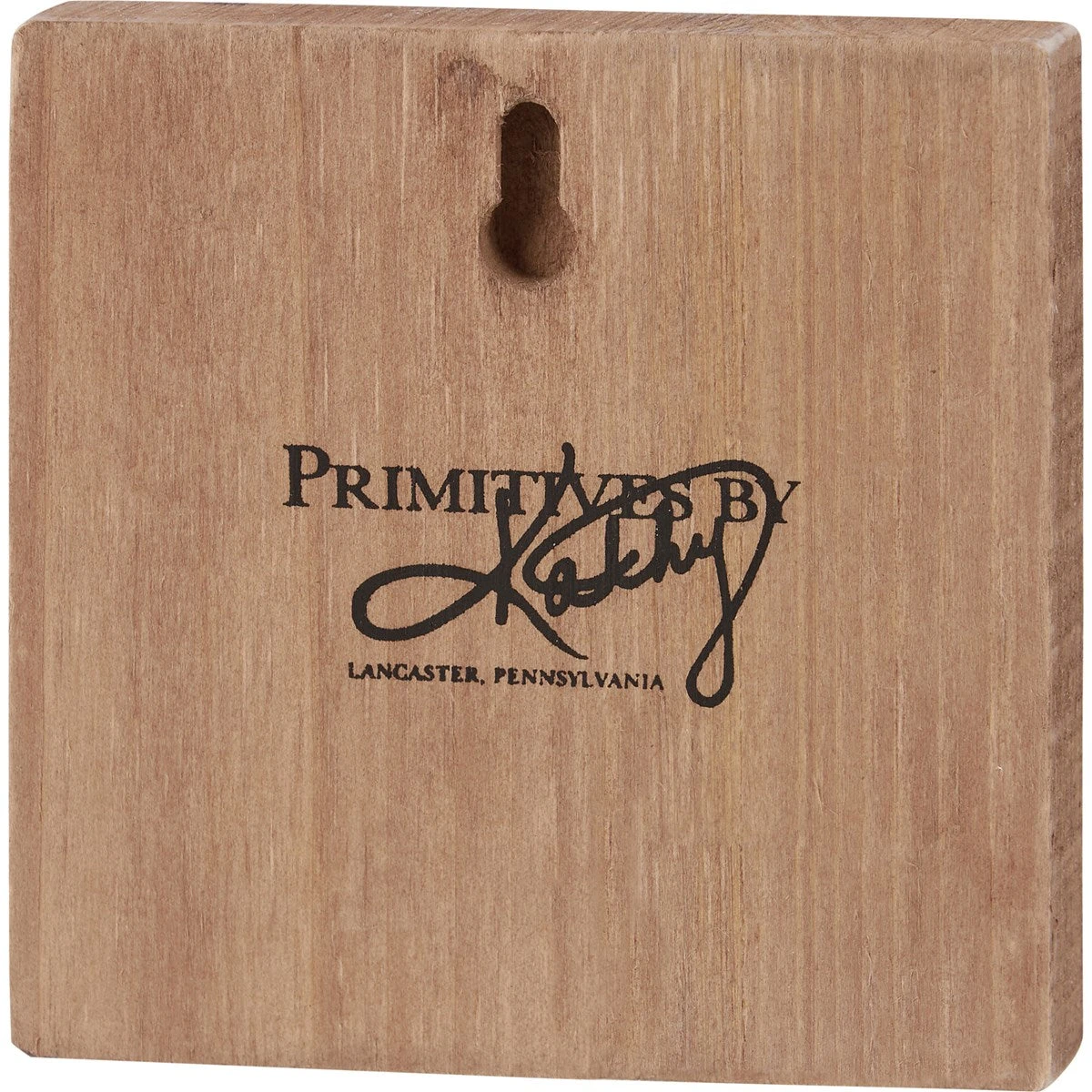 A wooden block sign displaying a raccoon with snowy woodland background and natural stained wood sides. Design is replicated from original artwork painted onto burlap canvas, giving the art a unique depth and texture. The raccoon block sign is easy to hang via predrilled keyhole slot or can free-stand alone.