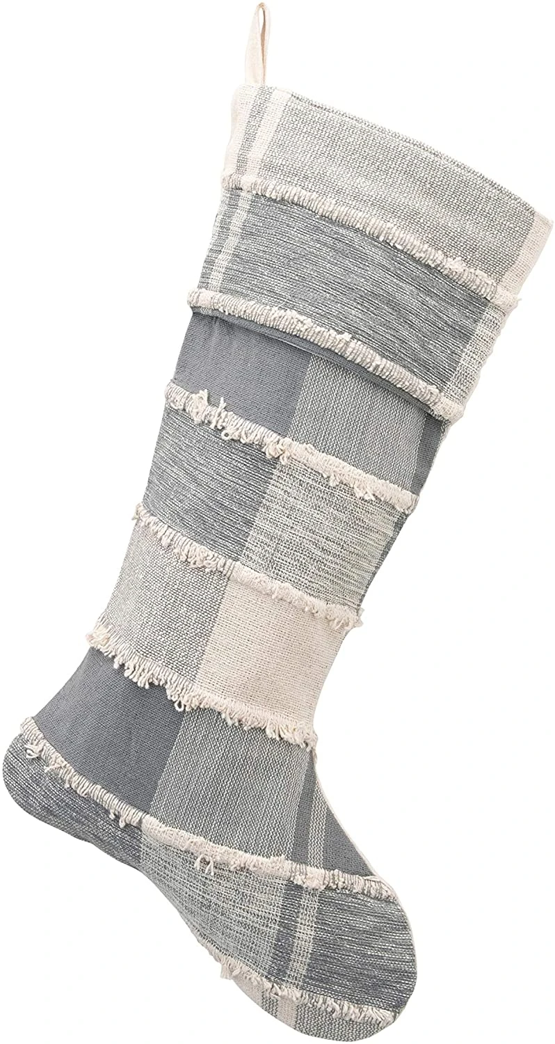 Cotton Plaid Christmas Stocking With Frayed Edges