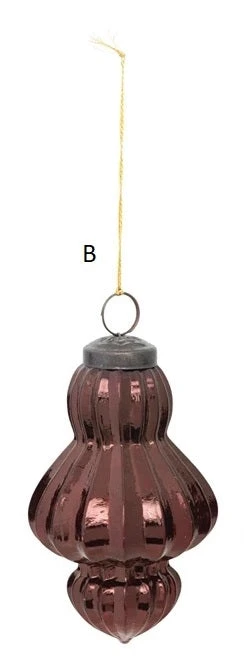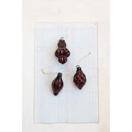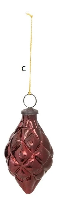 Embossed Mercury Glass Kugel Shape Ornament, Burgundy, 3 Style Options