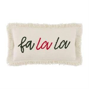 “Fa La La” Boucle’ Embroidered Mini Christmas Pillow By Mud Pie