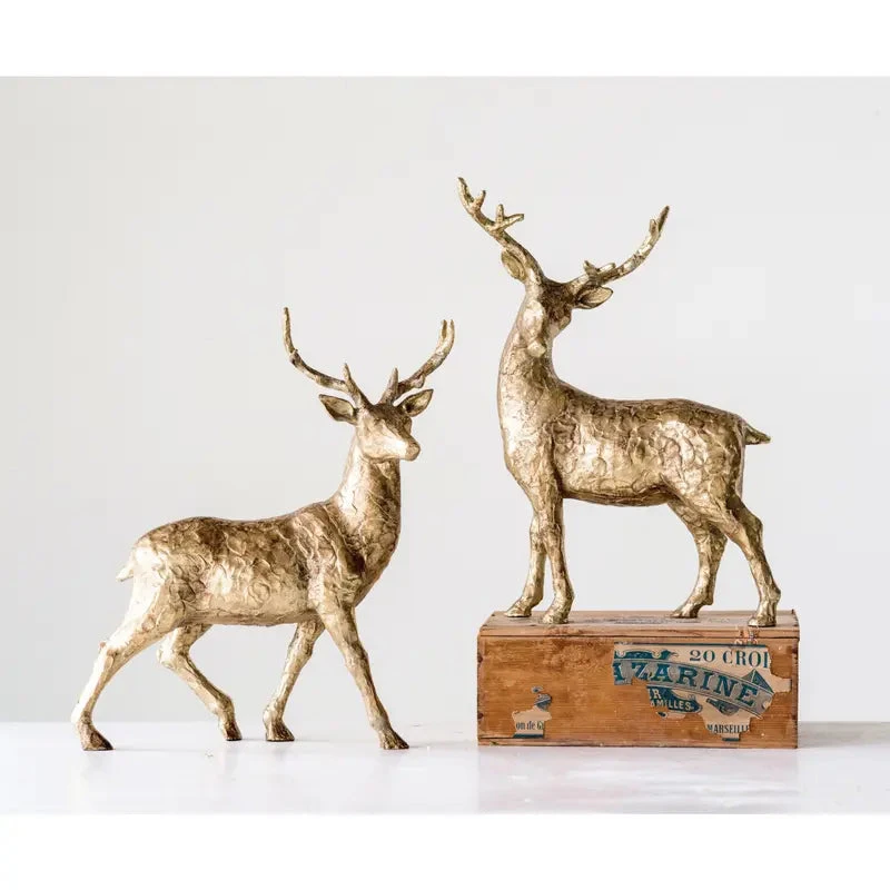 These resin deer figurines with gold finishes come in two different styles. Place on a table or shelf or add to a centerpiece for a bit of extra flair.