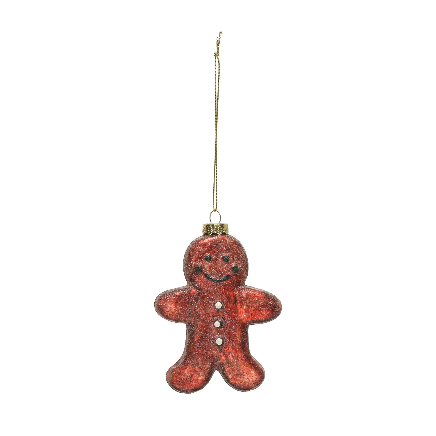 Hand-Painted Glass Gingerbread Man Ornament With Glitter, Brown