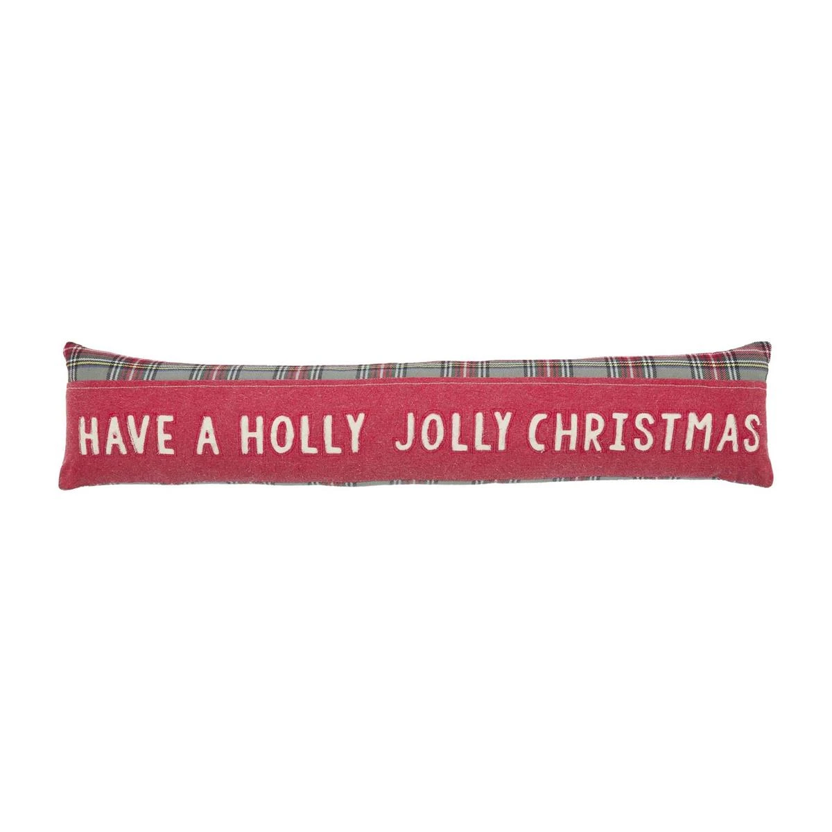 Be jolly by golly with our Holly Jolly Skinny Tartan Pillow. The skinny pillow features appliqued washed canvas fabric. The pillow also features a tartan backing. The front of the pillow features the sentiment “Have a Holly Jolly Christmas”. Perfect for benches, beds and couches.