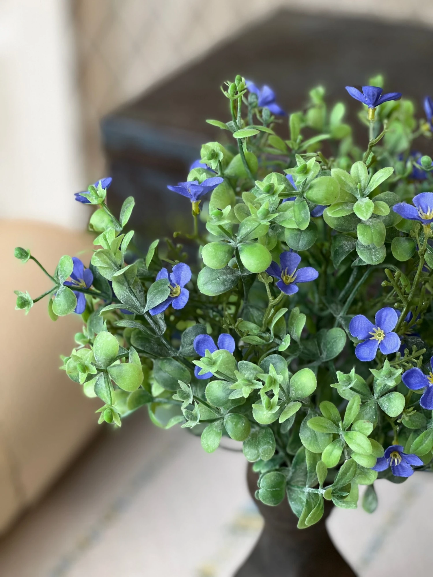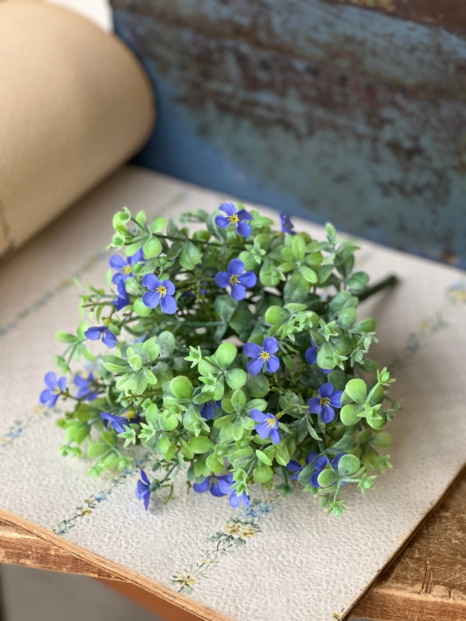 A winsome collection composed of pretty tonal leaves and tiny budslacedwith violet-like blooms. Greenery has a lightly powdered finish.
