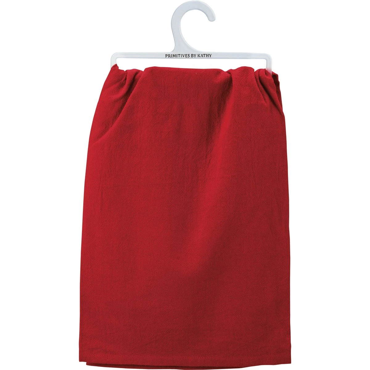A red cotton kitchen towel featuring a typeset “I Ate Santa’s Cookies, No Regrets” sentiment. Our No Regrets kitchen towel is machine-washable.