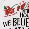A cotton kitchen towel featuring “In This House We Believe In Mimi Claus” sentiment with festive designs. Machine-washable.