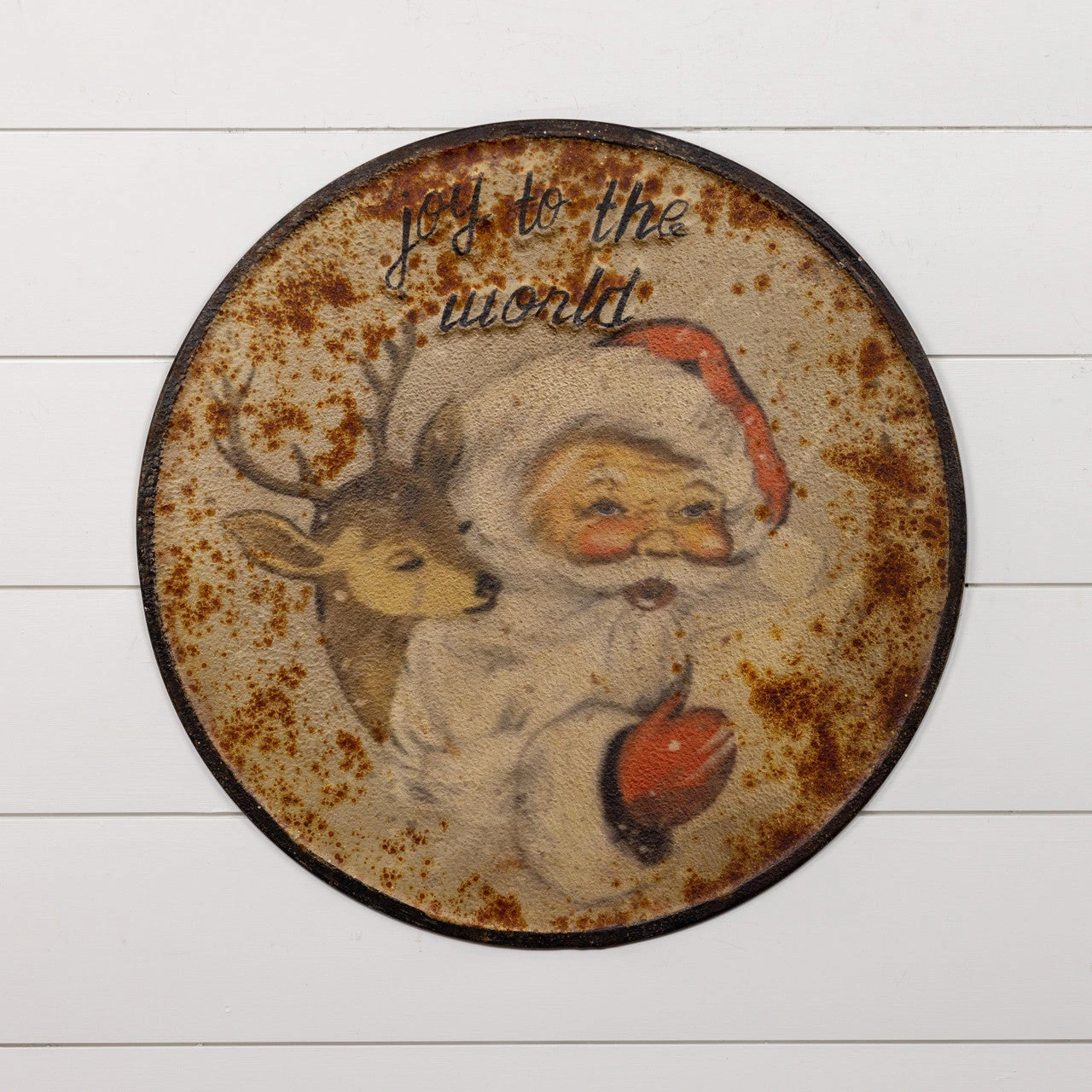 “Joy To The World” Santa & Reindeer Distressed Round Sign (Pick Up Only)