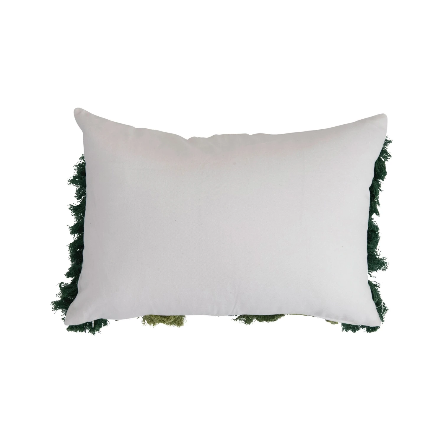 Lumbar Pillow With Trees, Embroidery & Applique, Green & Cream