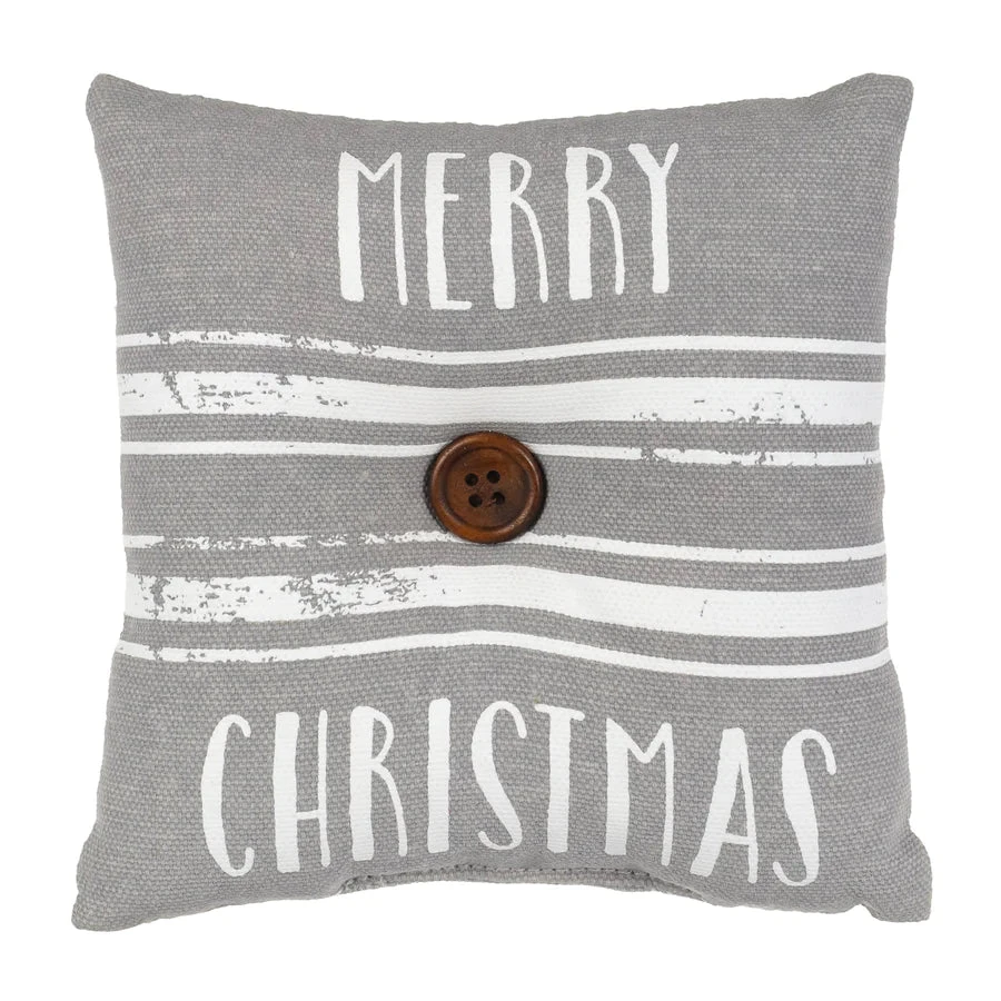 “Merry Christmas” Gray & White Striped Mini Pillow