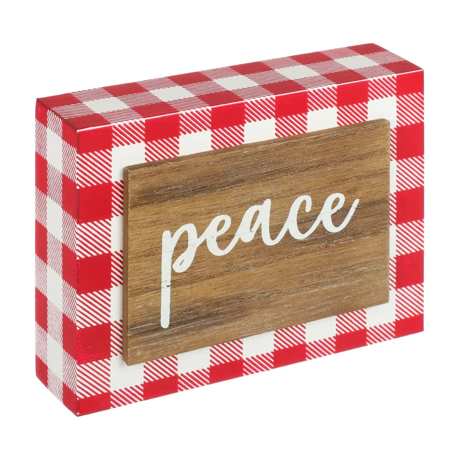 “Peace” 3D Red Buffalo Check Plaid Wood Block Sign