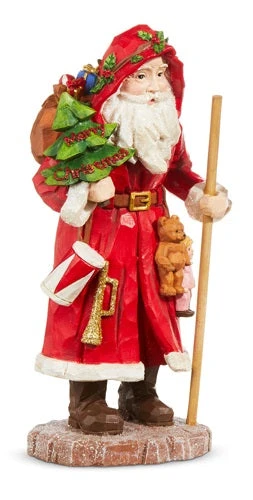 Red Coat Santa With Tree & Toys Figurine (Pick Up Only)