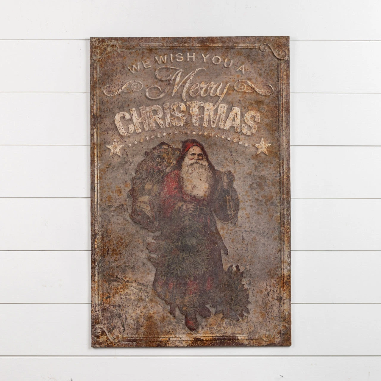 Santa Claus “We Wish You A Merry Christmas” Distressed Sign (Pick Up Only)