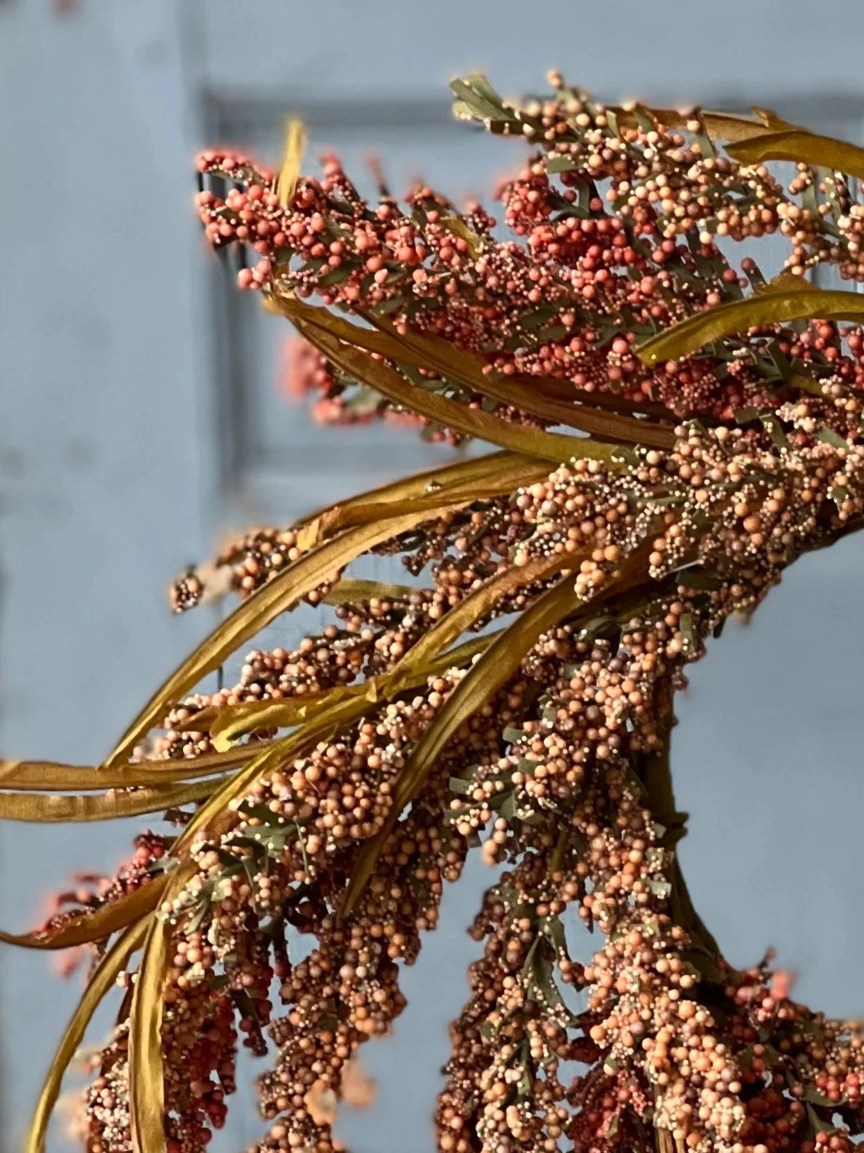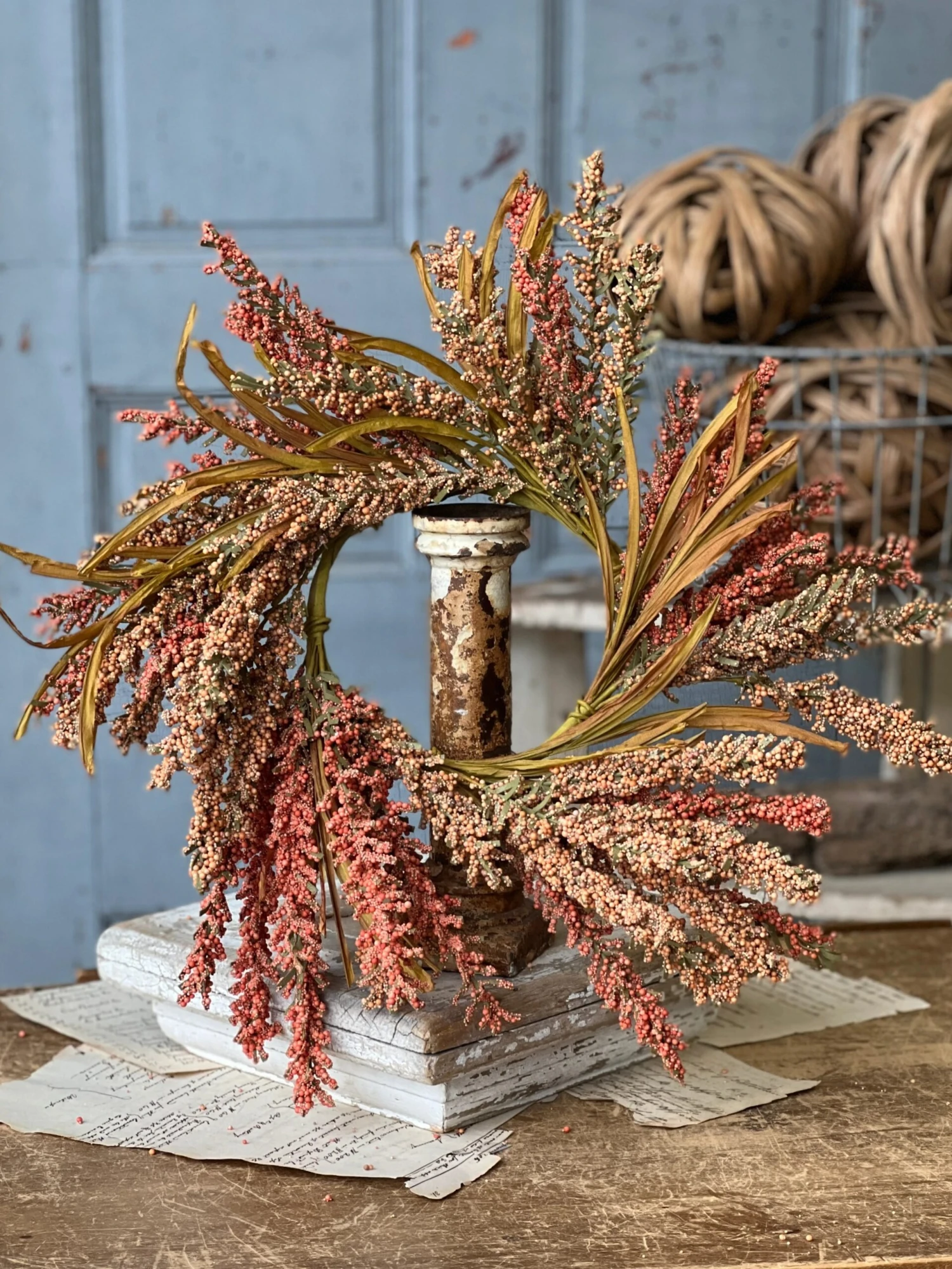 A collection that is rich intexture and sure to garner attention! Millet like spires composed of bubble berries make a bold statement and are beautifully accented with whisp like paper elements.