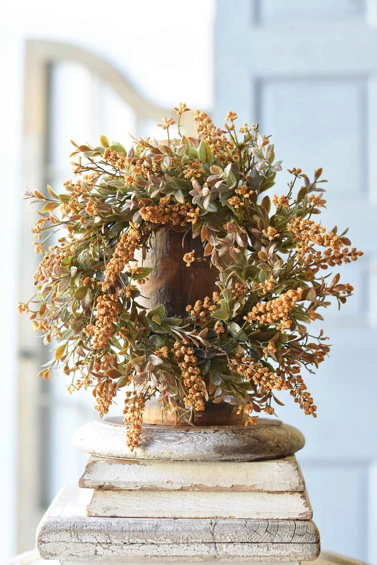 This collection features attractive spires of tiny bubble berry buds arcing from a background of spear shaped leaves.
